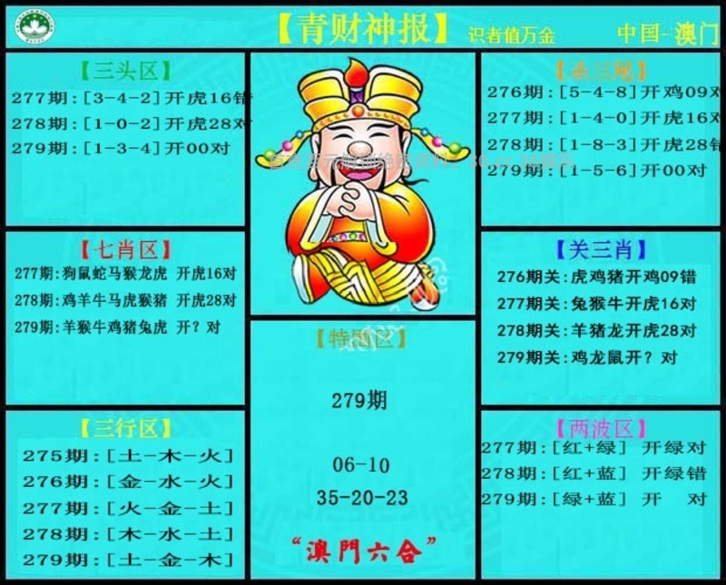 279期 | 3尾-4尾-7尾 | 0尾-3尾-5尾 | 1尾-2尾-5尾 |