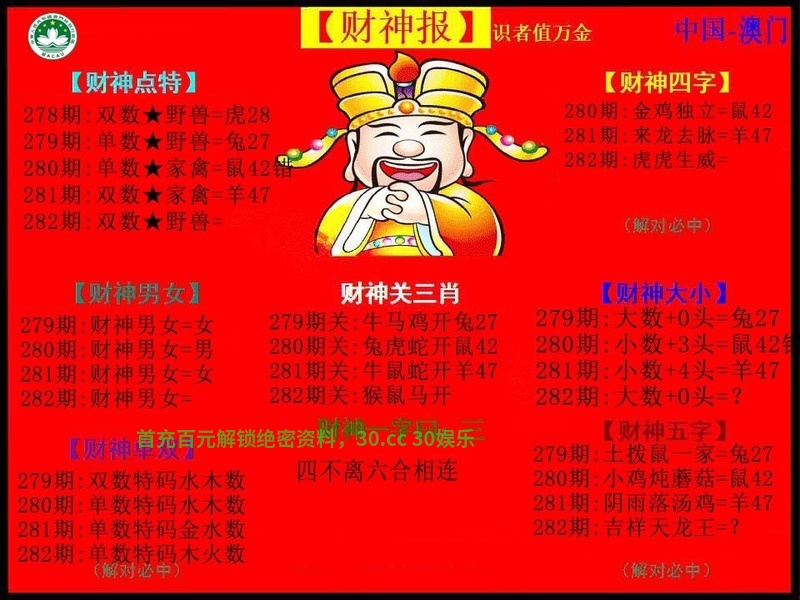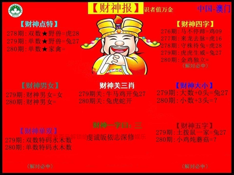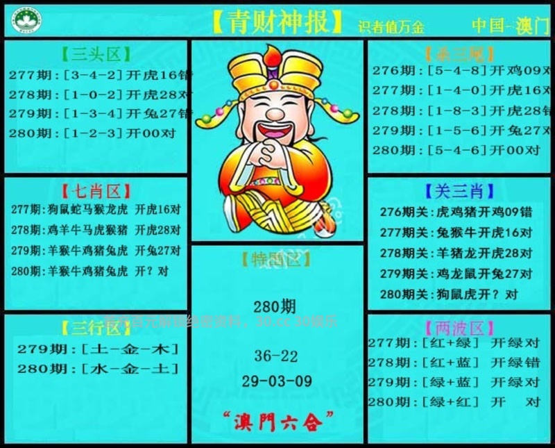 280期 | 1尾-2尾-5尾 | 1尾-3尾-4尾 | 2尾-4尾-7尾 |